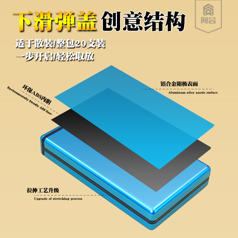 高档铝合金塑料细支自动弹盖烟盒