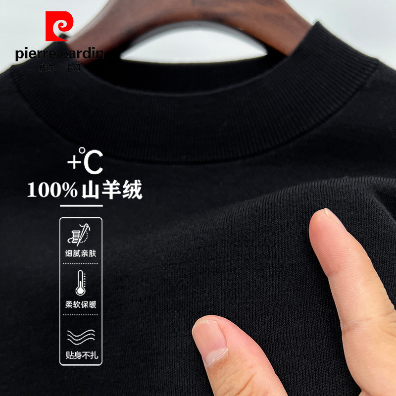 【80支可机洗】皮尔卡丹男士超薄精纺羊绒衫秋冬毛衣内搭打底毛t