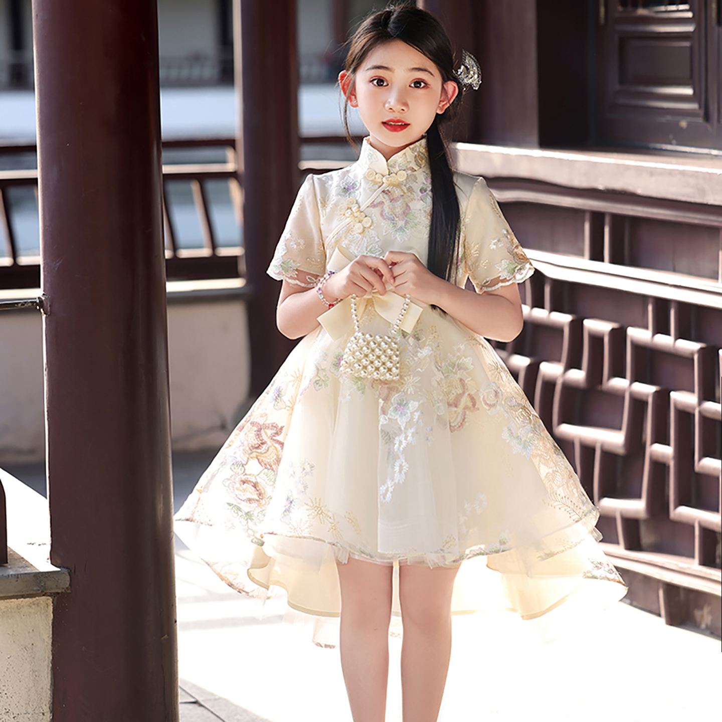 国风女童礼服儿童香槟色主持人旗袍公主裙小女孩新中式古筝演出服