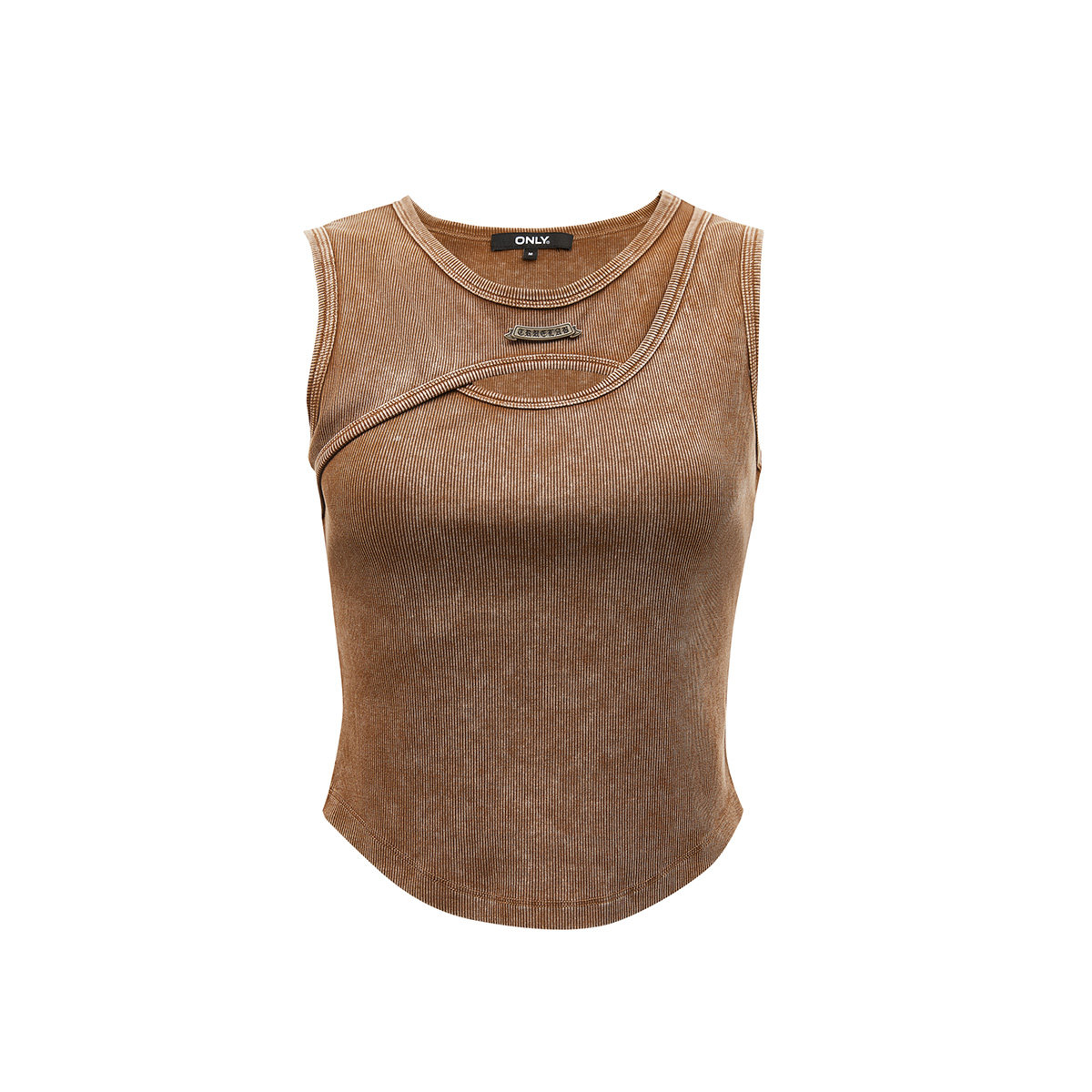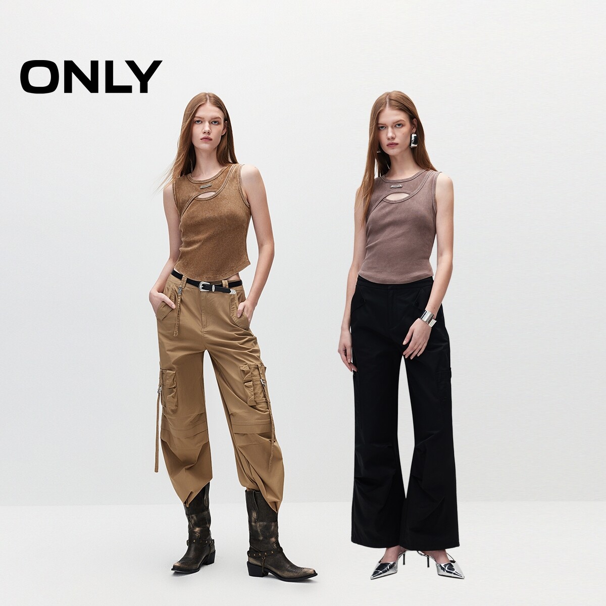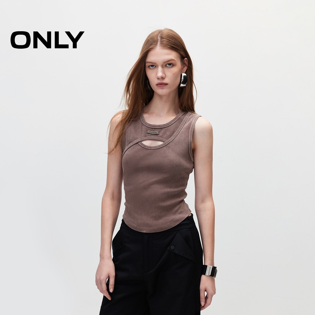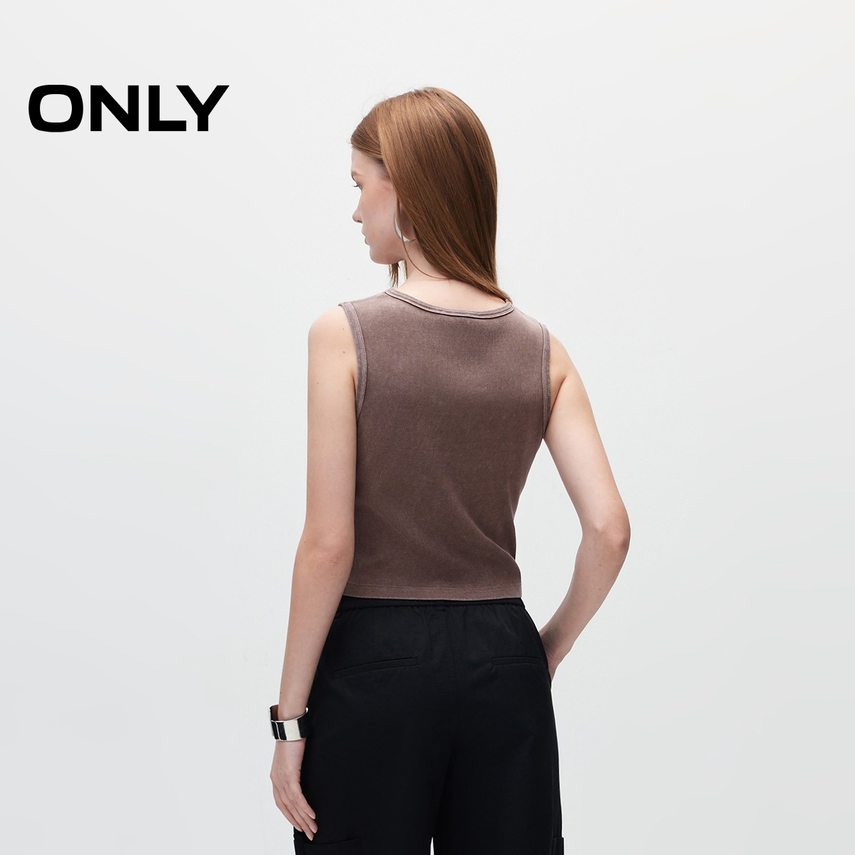 绫致ONLY秋冬新款性感修身显瘦纯色圆领复古做旧T恤女时尚