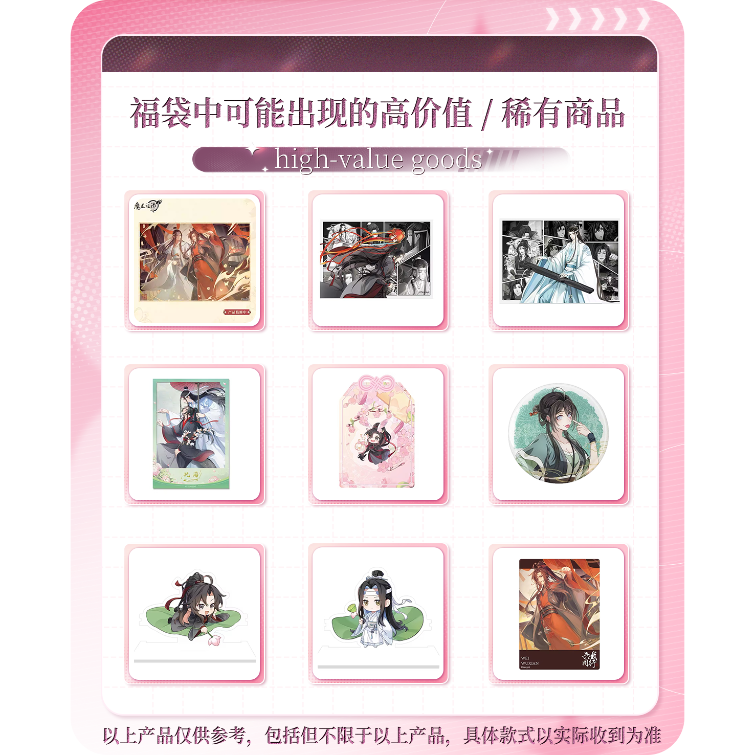 《魔道祖师》动画 官方周边幸运福袋吧唧立牌色纸挂件玩偶福袋