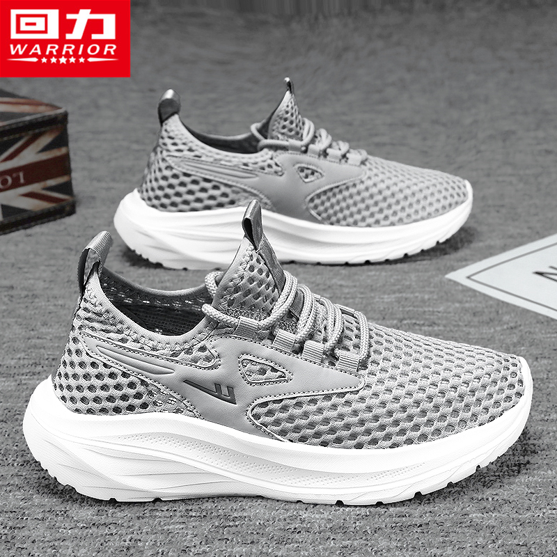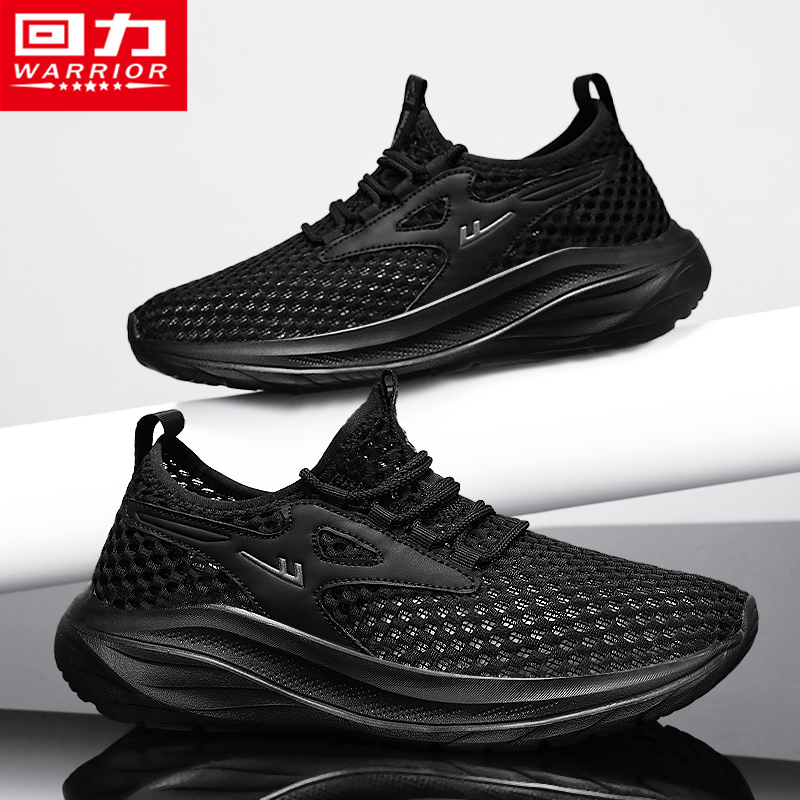 回力夏季男鞋透气薄款镂空网面网眼运动黑色休闲跑步防臭软底网鞋