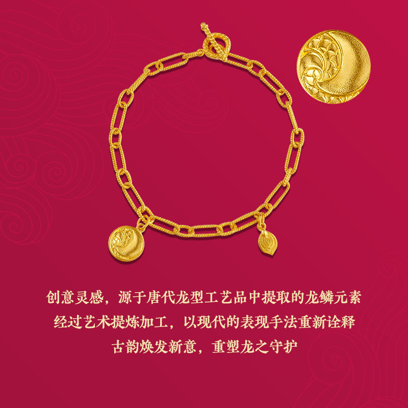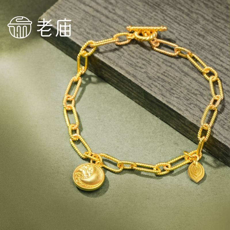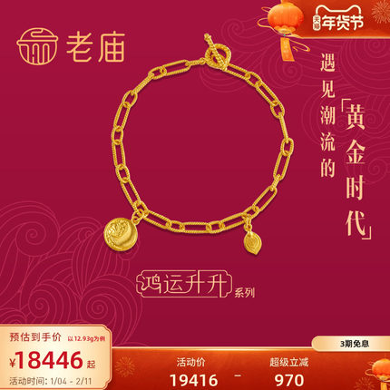 老庙黄金鸿运升升古法龙鳞手链Ins风仙女礼物官方正品