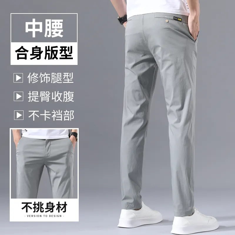 男士休闲裤夏季薄款直筒宽松速干男裤百搭潮流西裤透气弹力裤子男