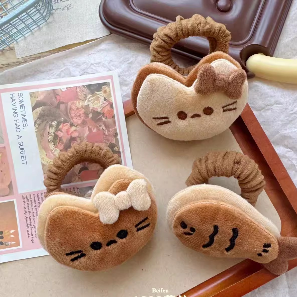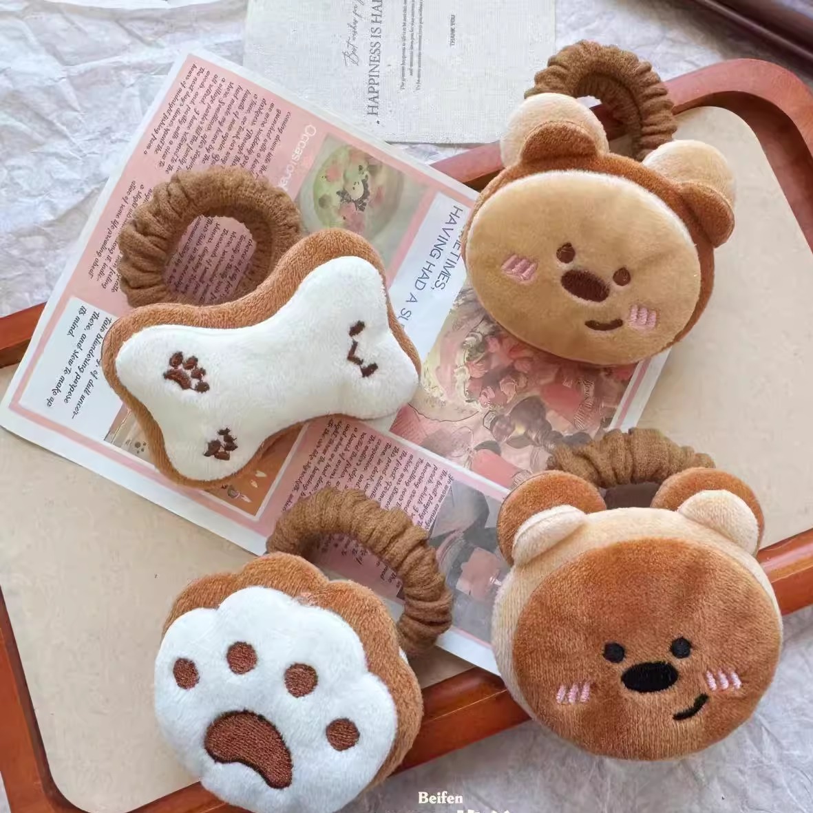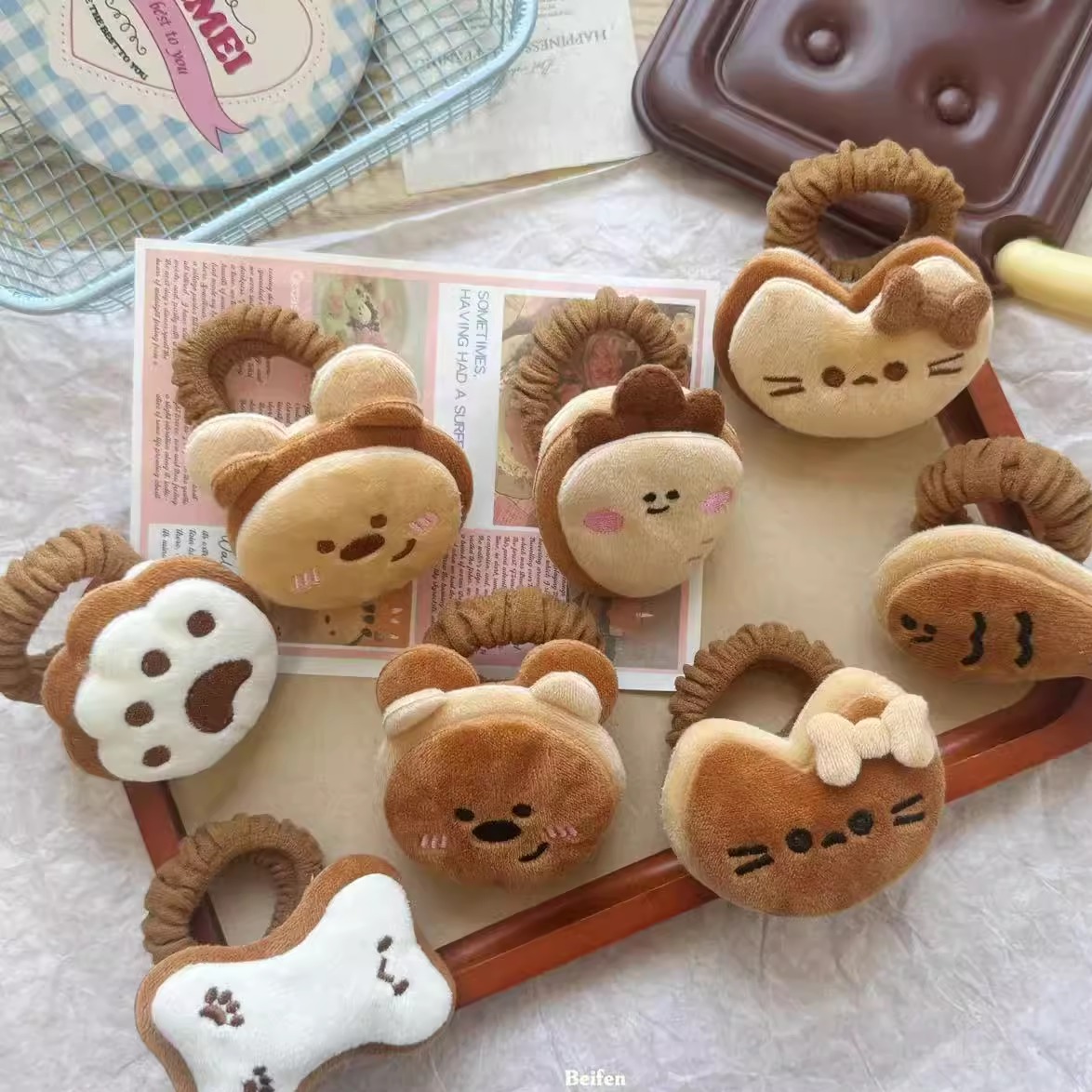 新款 复古咖色系面包小熊猫咪发绳 可爱食玩饼干发圈头绳玩偶皮筋