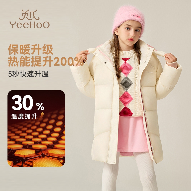 英氏儿童羽绒服2025冬季新款男女童中长款连帽保暖防风外套