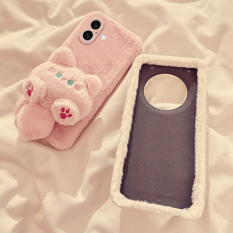 可爱跳跳鼠适用苹果iPhone16promax手机壳15plus立体14公仔13mini迷你1211卡通xr8毛绒7xsmax6硅胶5s/se3秋冬