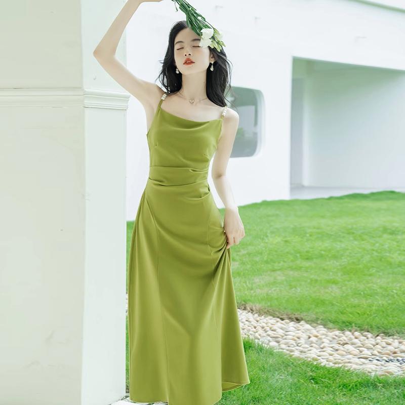 法式绿色连衣裙春夏2025新款高级感气质绝美超仙吊带开衫两件套装
