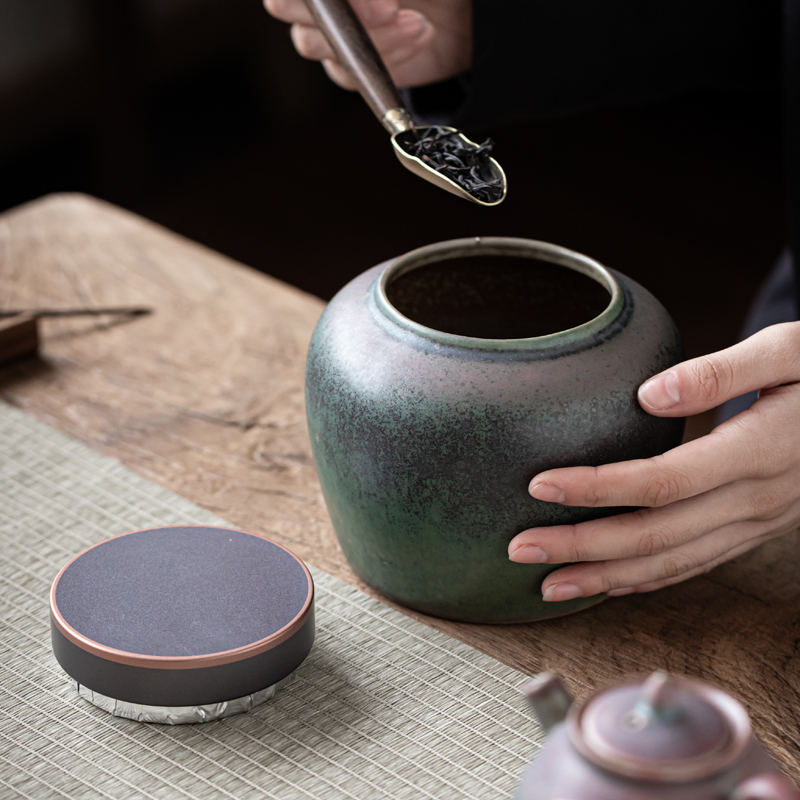 窑变釉复古茶叶罐密封罐日式陶瓷茶罐家用储存茶叶罐子存茶储茶罐
