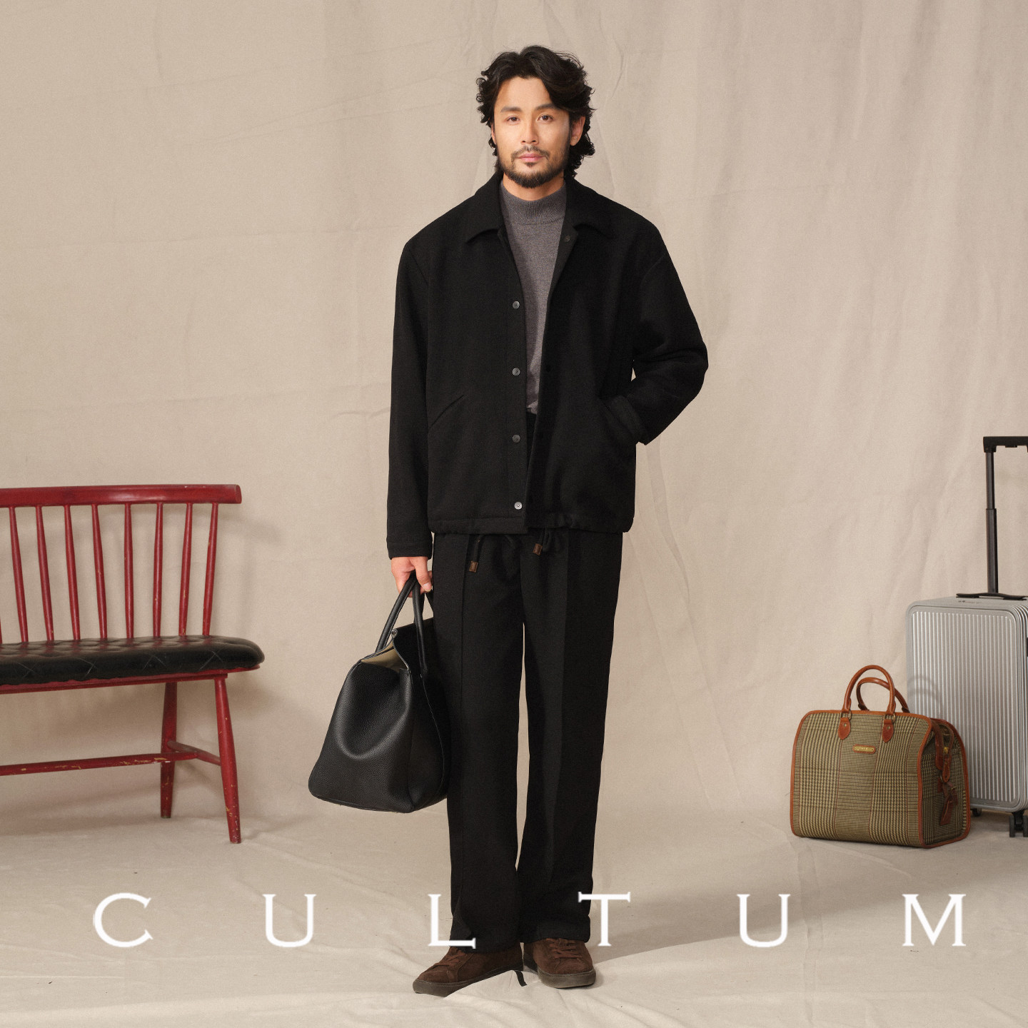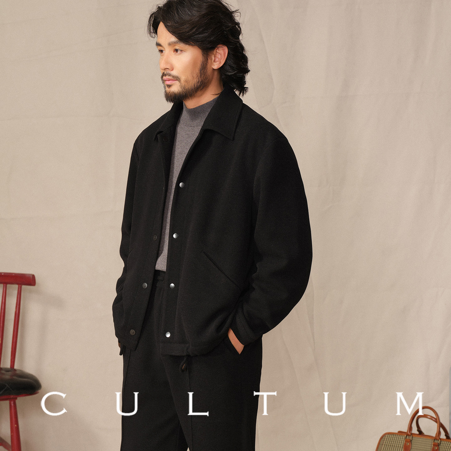 CULTUM针织翻领单排扣夹克外套