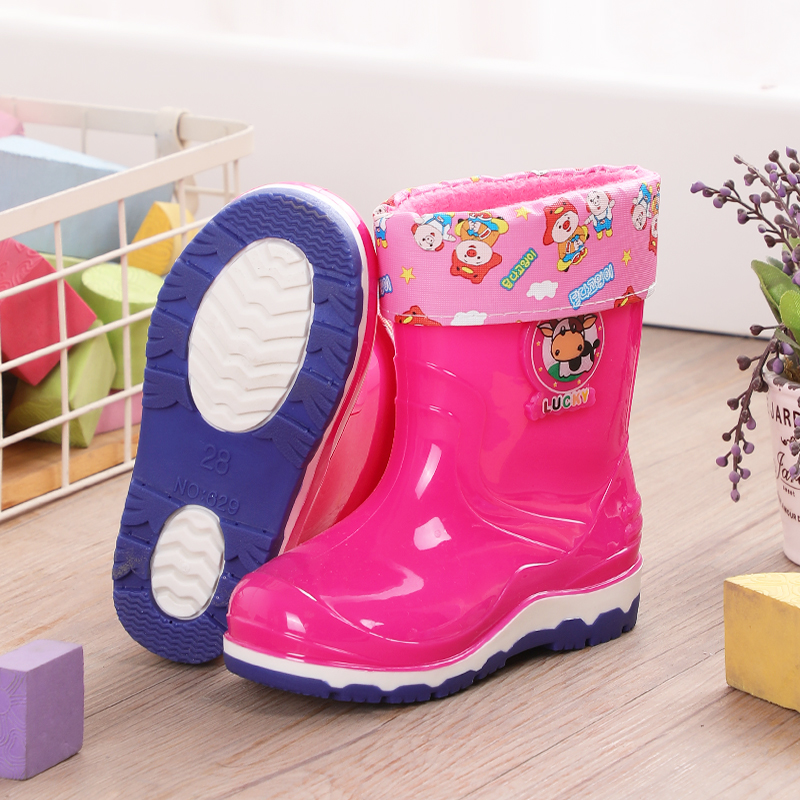 宝宝雨鞋女款儿童2-10岁加绒加棉防滑雨靴男童可爱幼儿园女童小童
