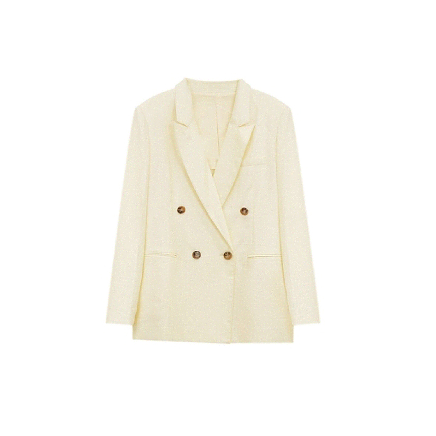 CHU楚妞[乳黄]天丝亚麻双排小西装春季新款女高级感老钱外套