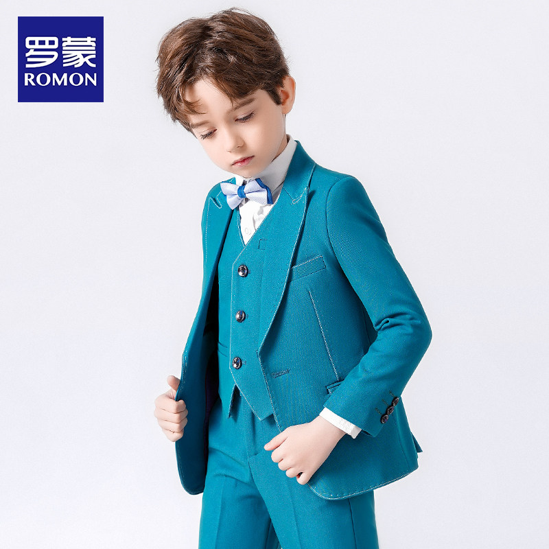 罗蒙男童西装套装儿童礼服三件套英伦男孩休闲西服小主持人演出服