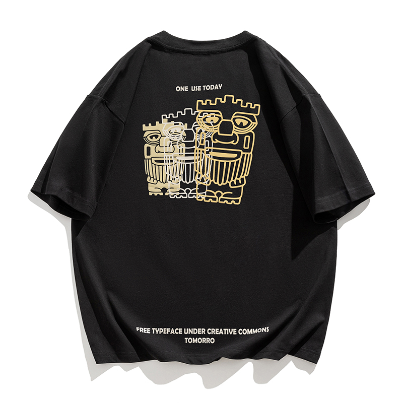 拉夏贝尔重磅纯棉青少年短袖T恤男夏季新款宽松半袖国潮印花百搭