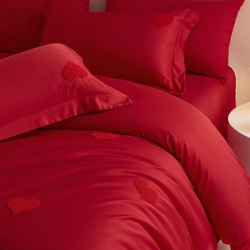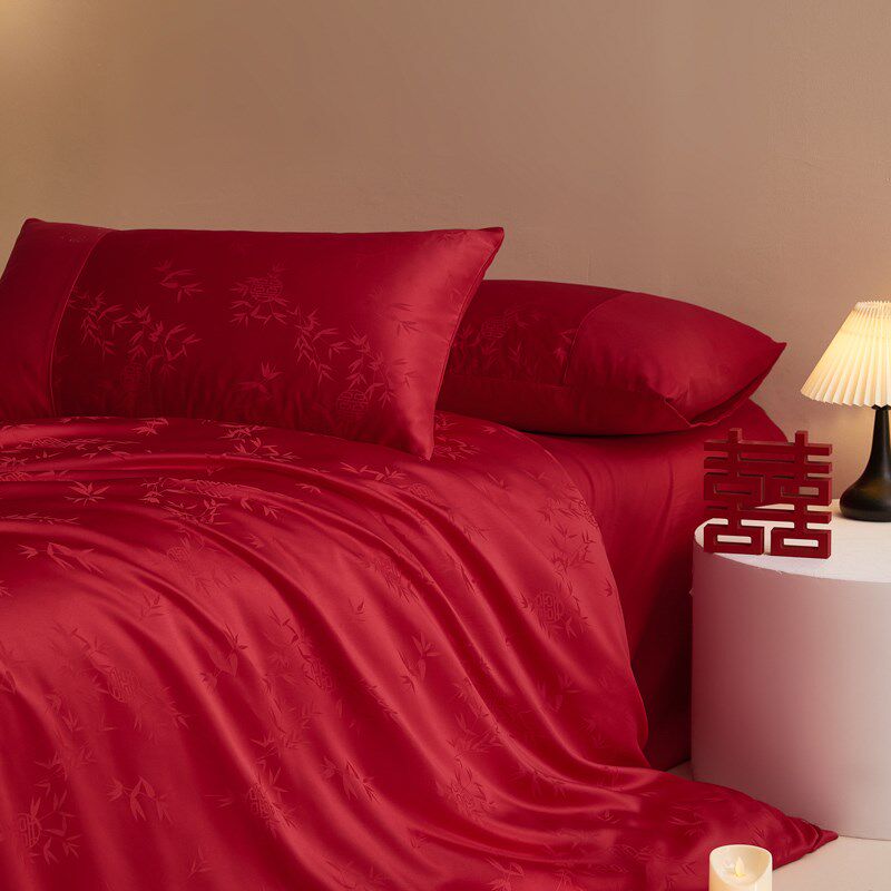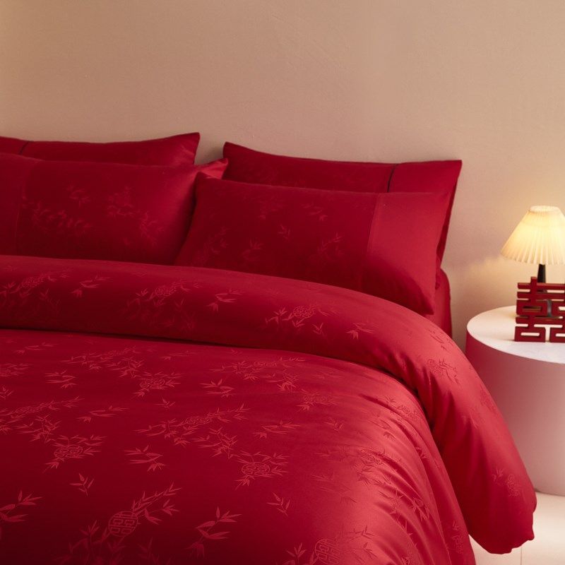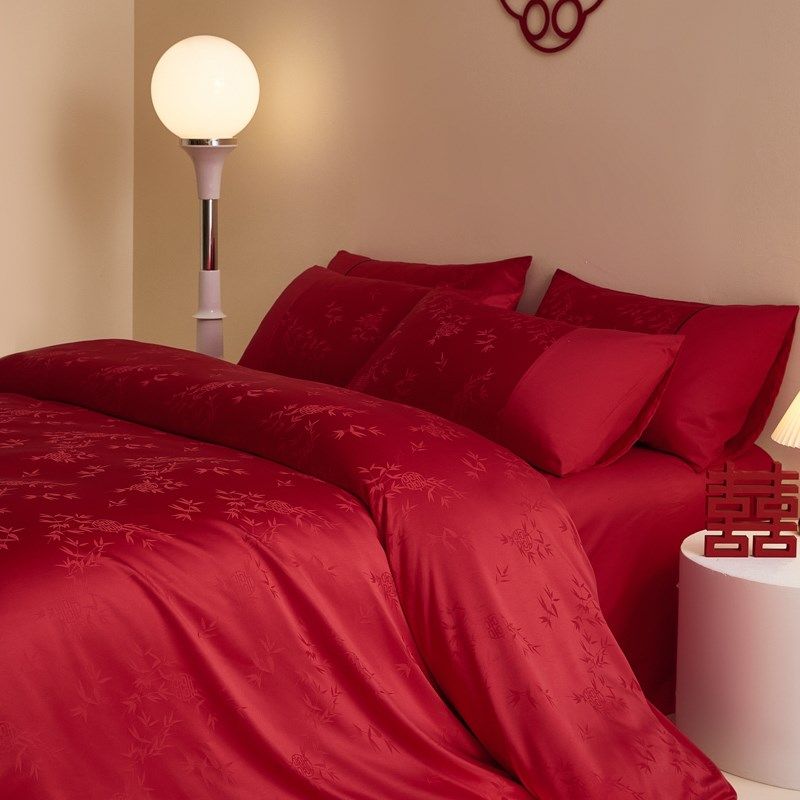 结婚四件套新婚喜庆红色提花被套纯棉床单床笠R款婚庆陪嫁床上用
