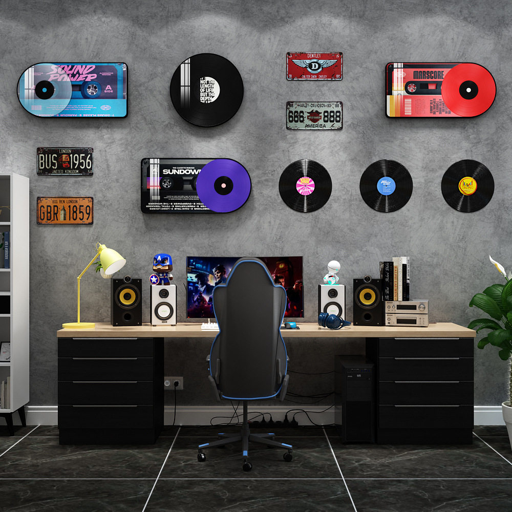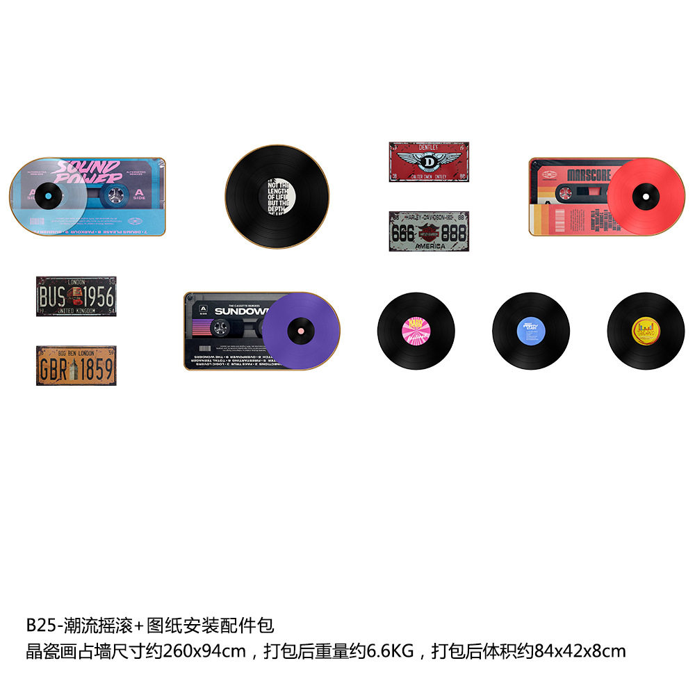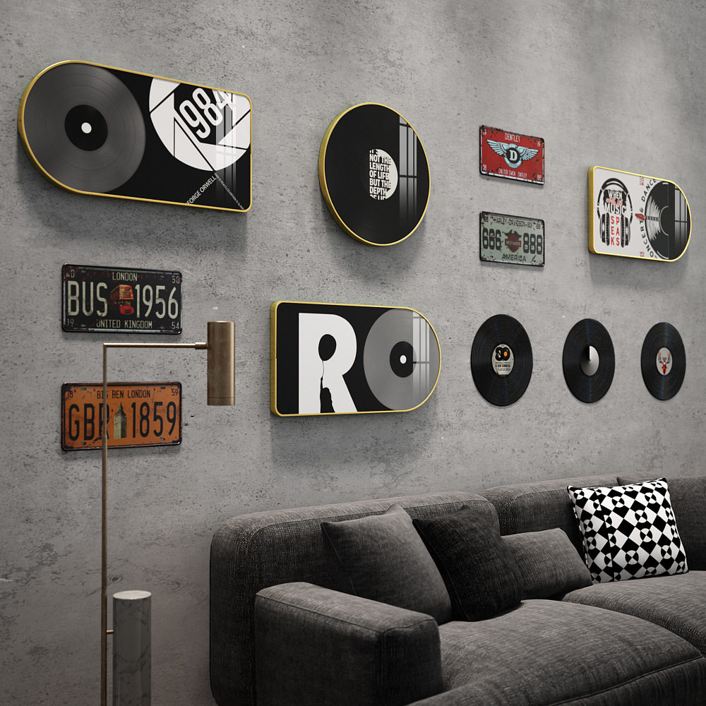 时尚百搭黑胶唱片loft工业风装饰画音乐复古酒吧饭店背景墙装饰品