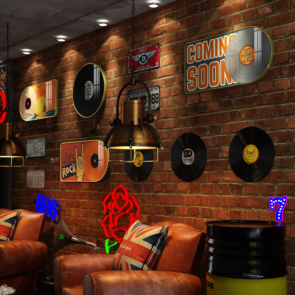 工业风背景墙loft黑胶唱片饭店
