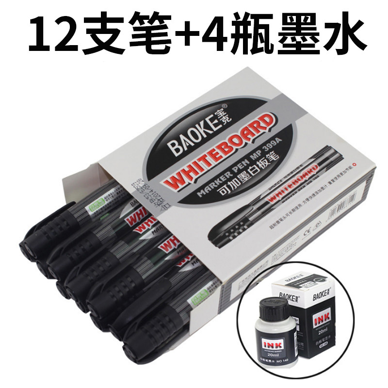 宝克水性白板笔可加墨水大容量儿童白板笔可擦白板写字笔红蓝黑板笔教师用易擦写画板笔白版笔马克笔办公用品