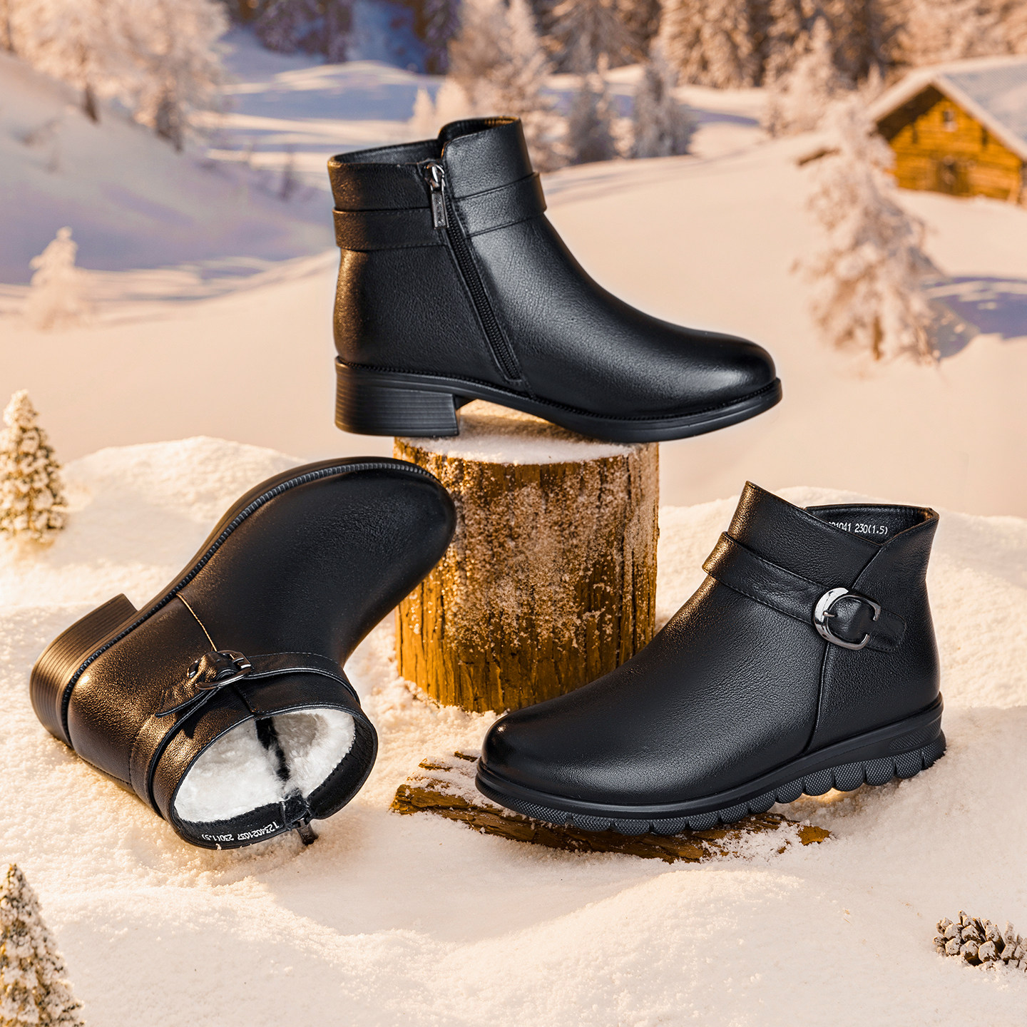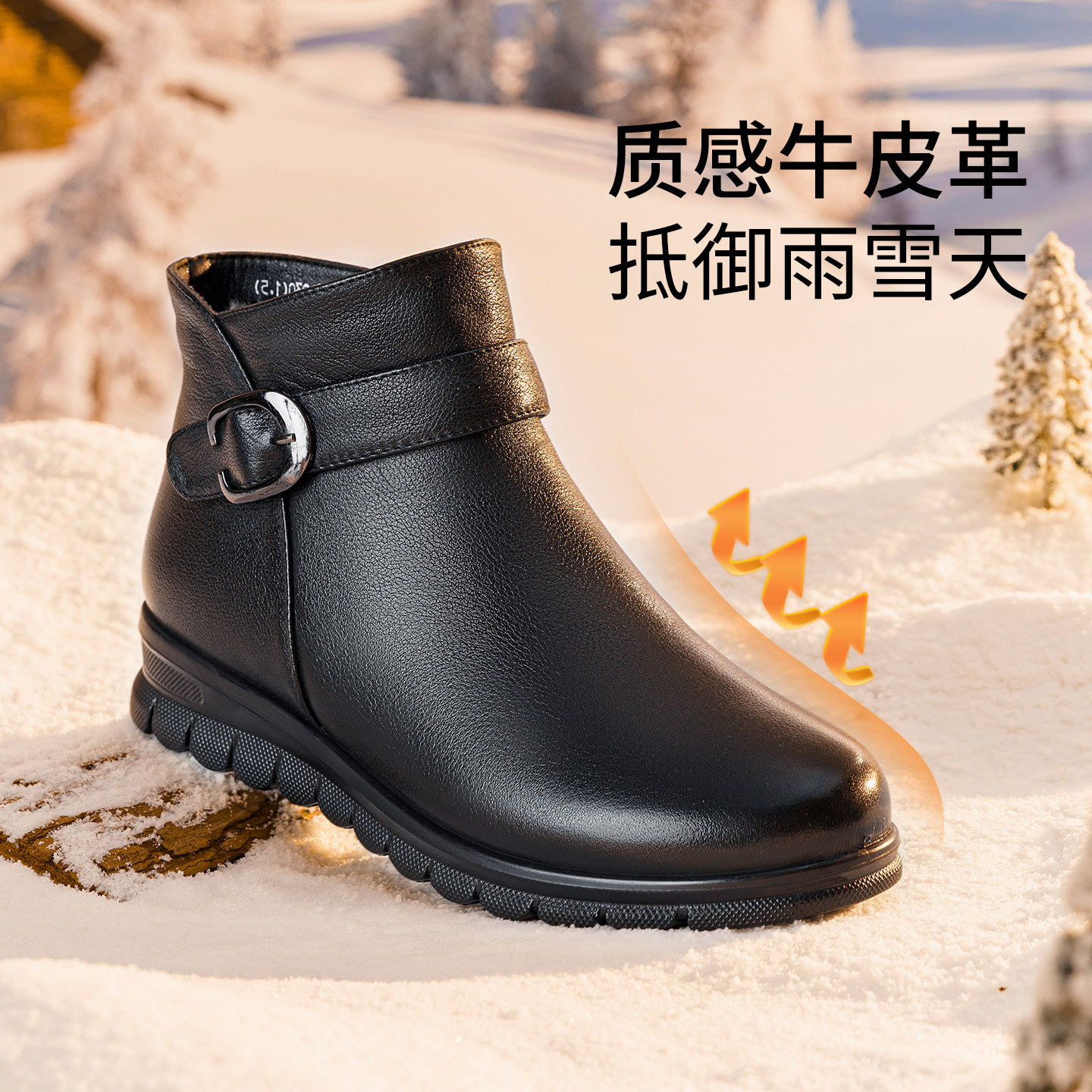 奥康冬季新款真皮加绒保暖皮靴