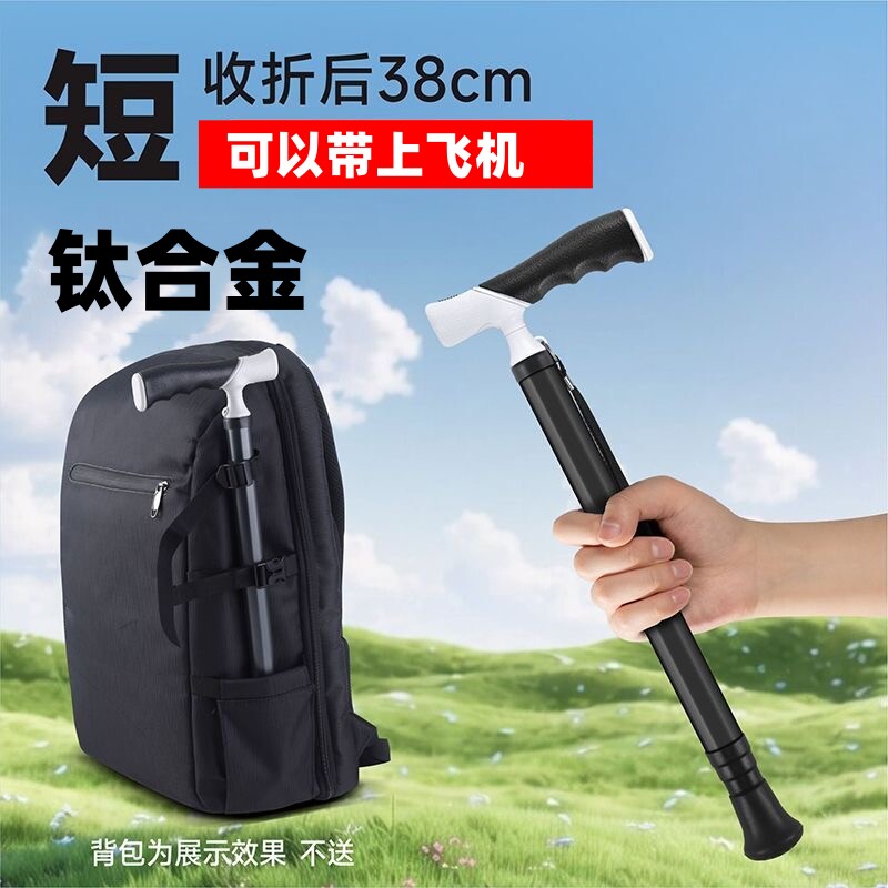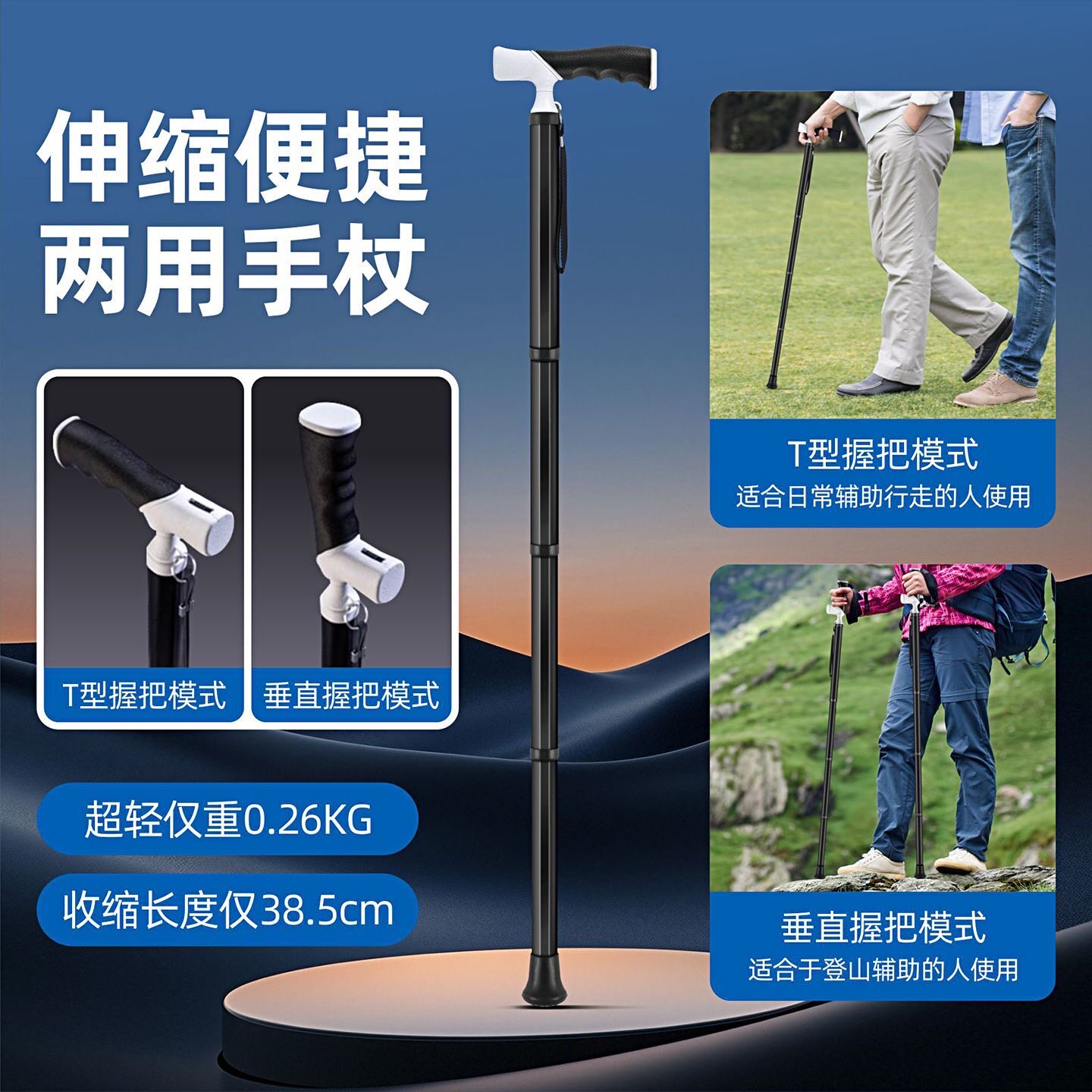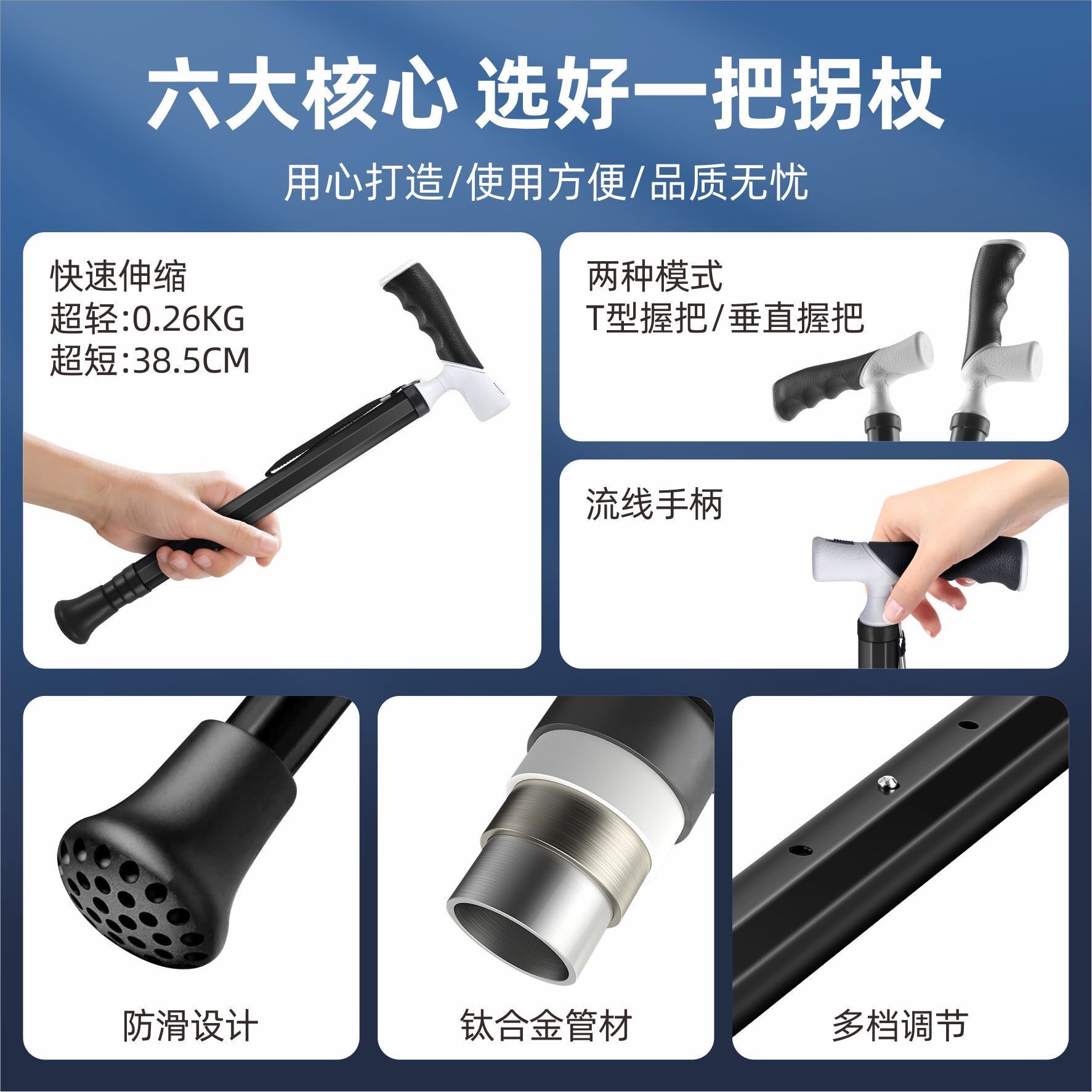 【德国品牌】钛合金年轻人登山徒步手杖老人防滑拐棍伸缩四脚拐杖