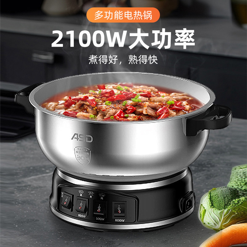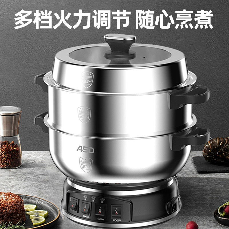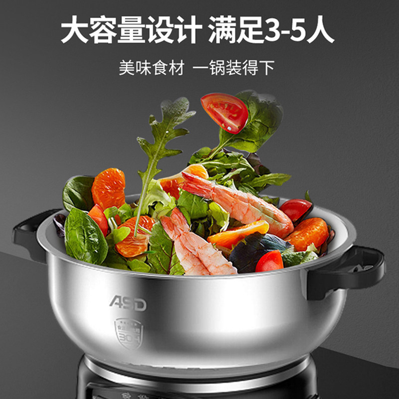 爱仕达家用大容量电热锅304不锈钢电蒸锅多功能家用电炒锅电煮锅