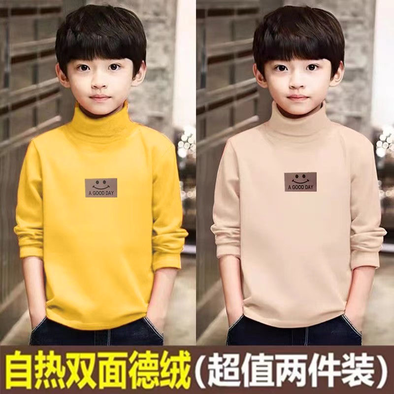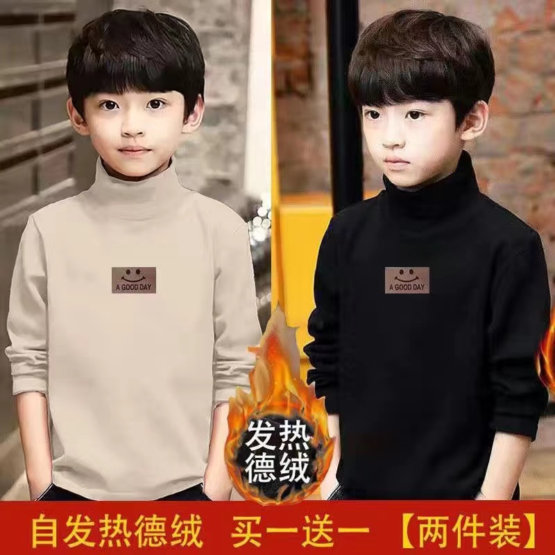 男童双面德绒打底衫半高领秋冬加绒加厚儿童保暖长袖上衣T恤印花