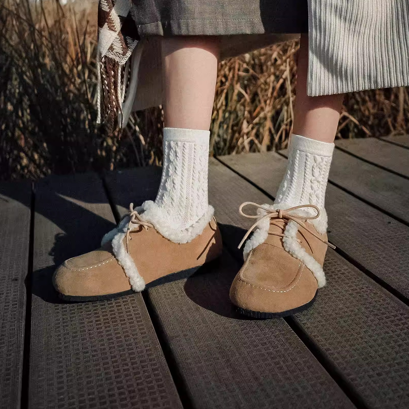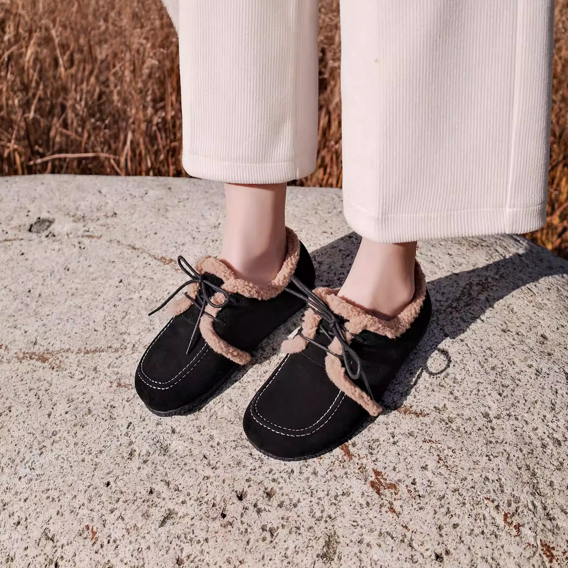 羊皮勃肯毛毛鞋女冬季保暖乐福鞋雪地靴羊羔毛2025年冬新款