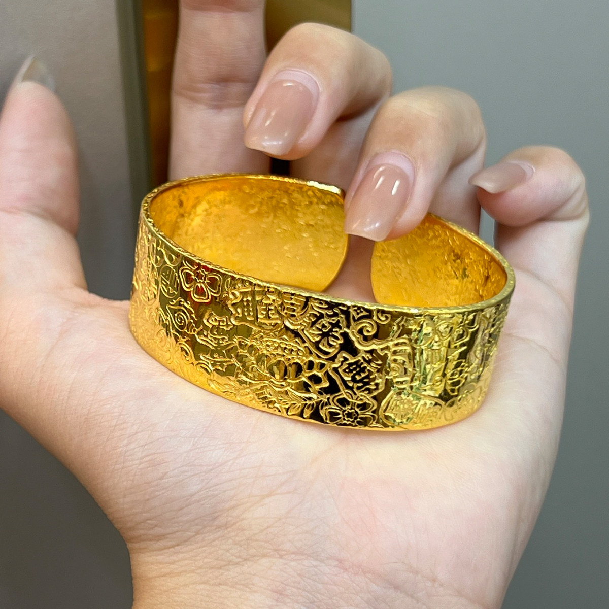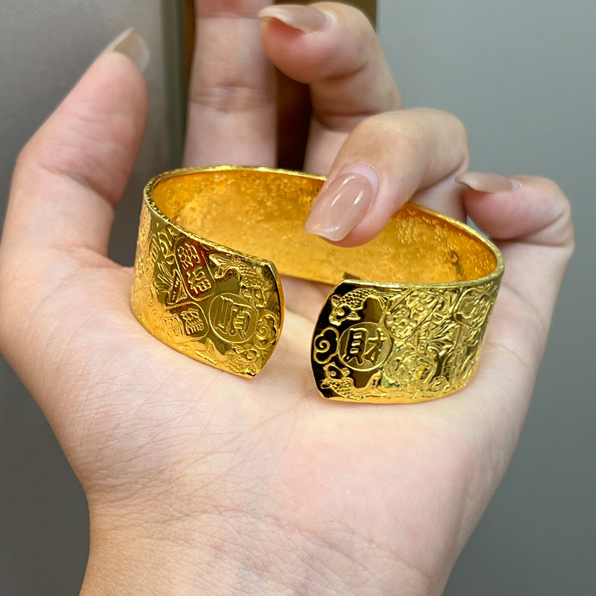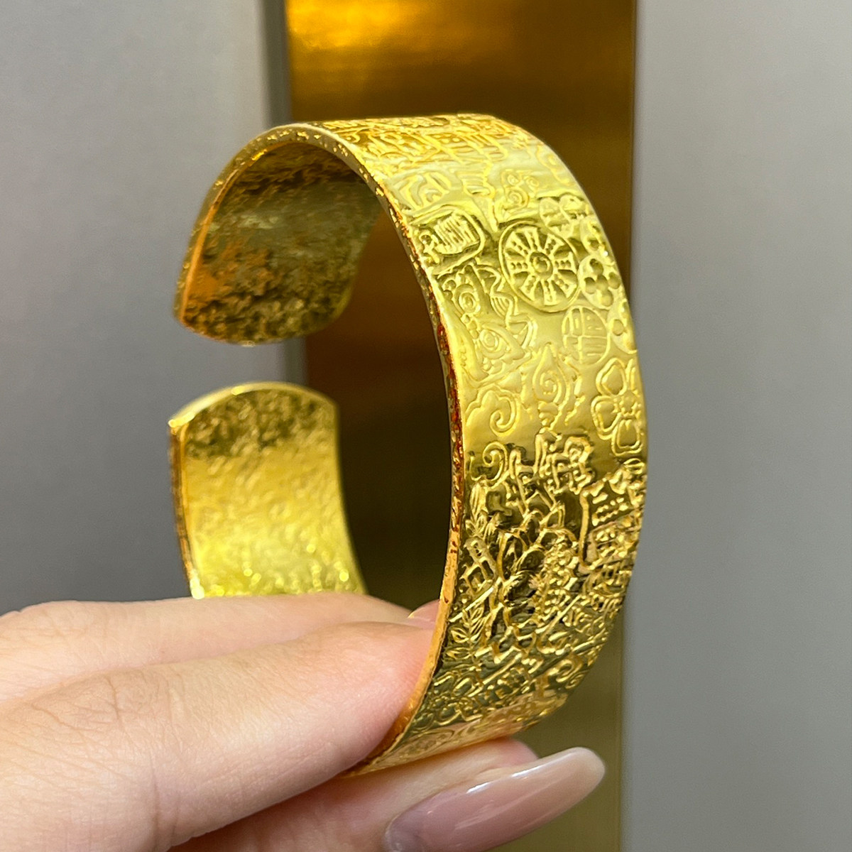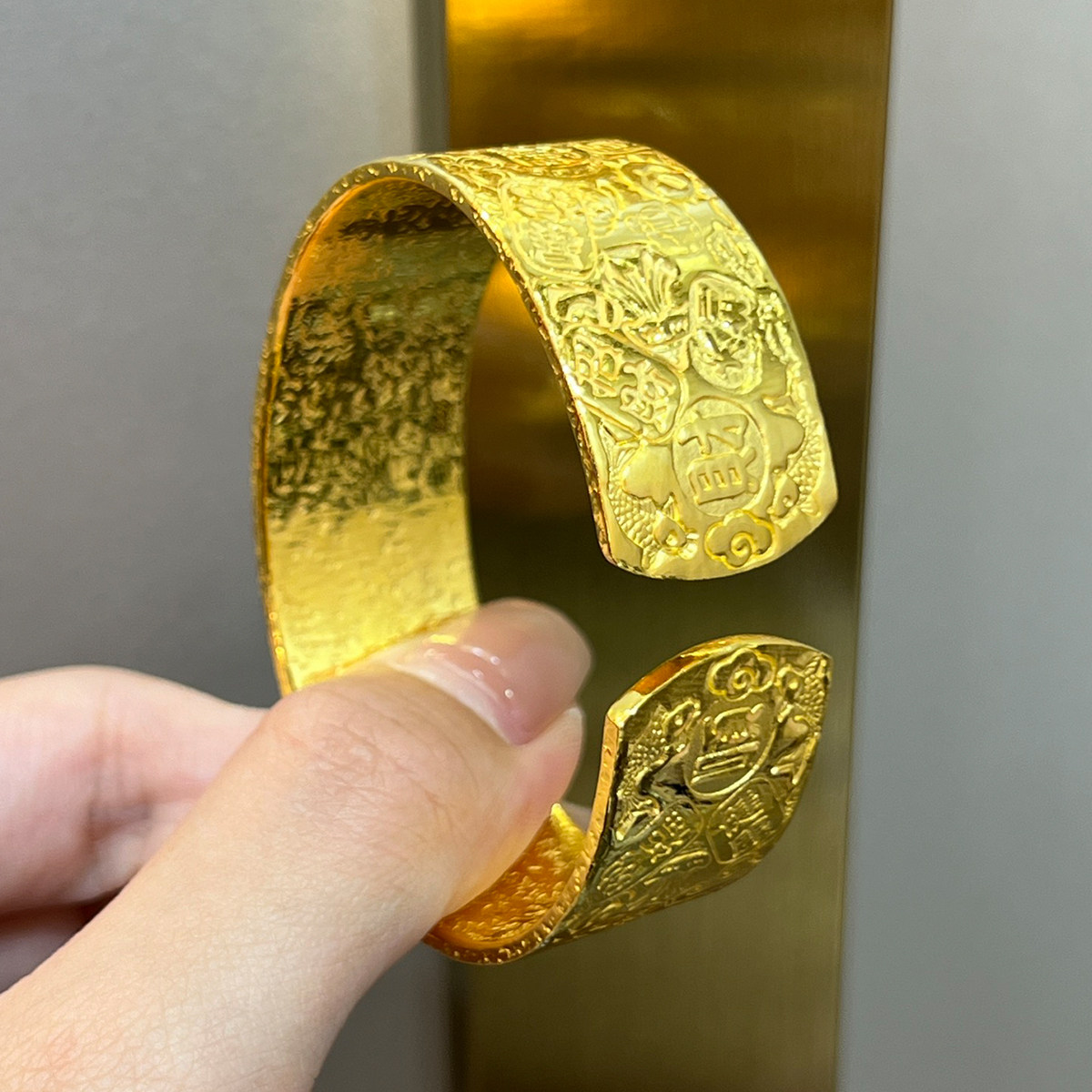 吉盟珠宝黄金开口手镯吉言宽版可调节足金999贵妃镯女款结婚三金