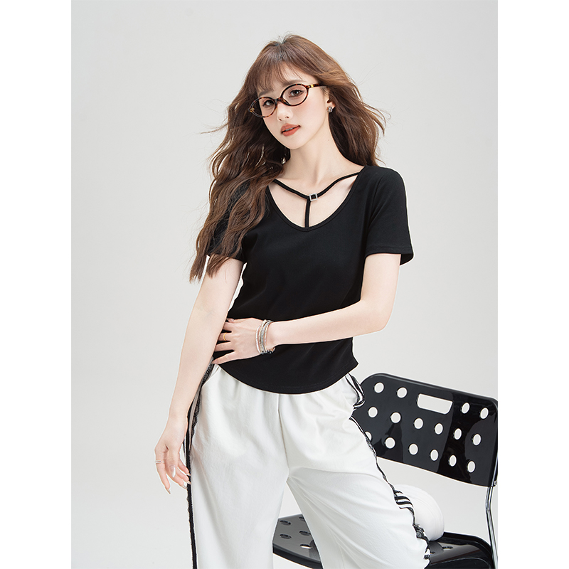 纯欲性感内搭短袖T恤女夏季新款简约设计感修身显瘦打底衫上衣潮