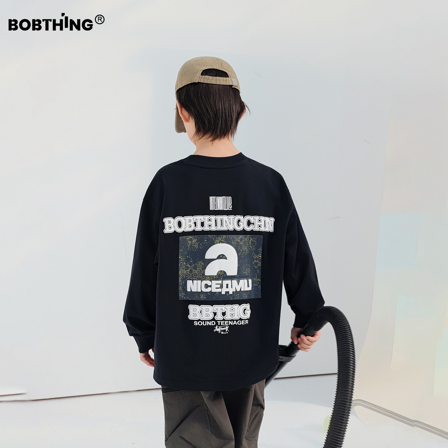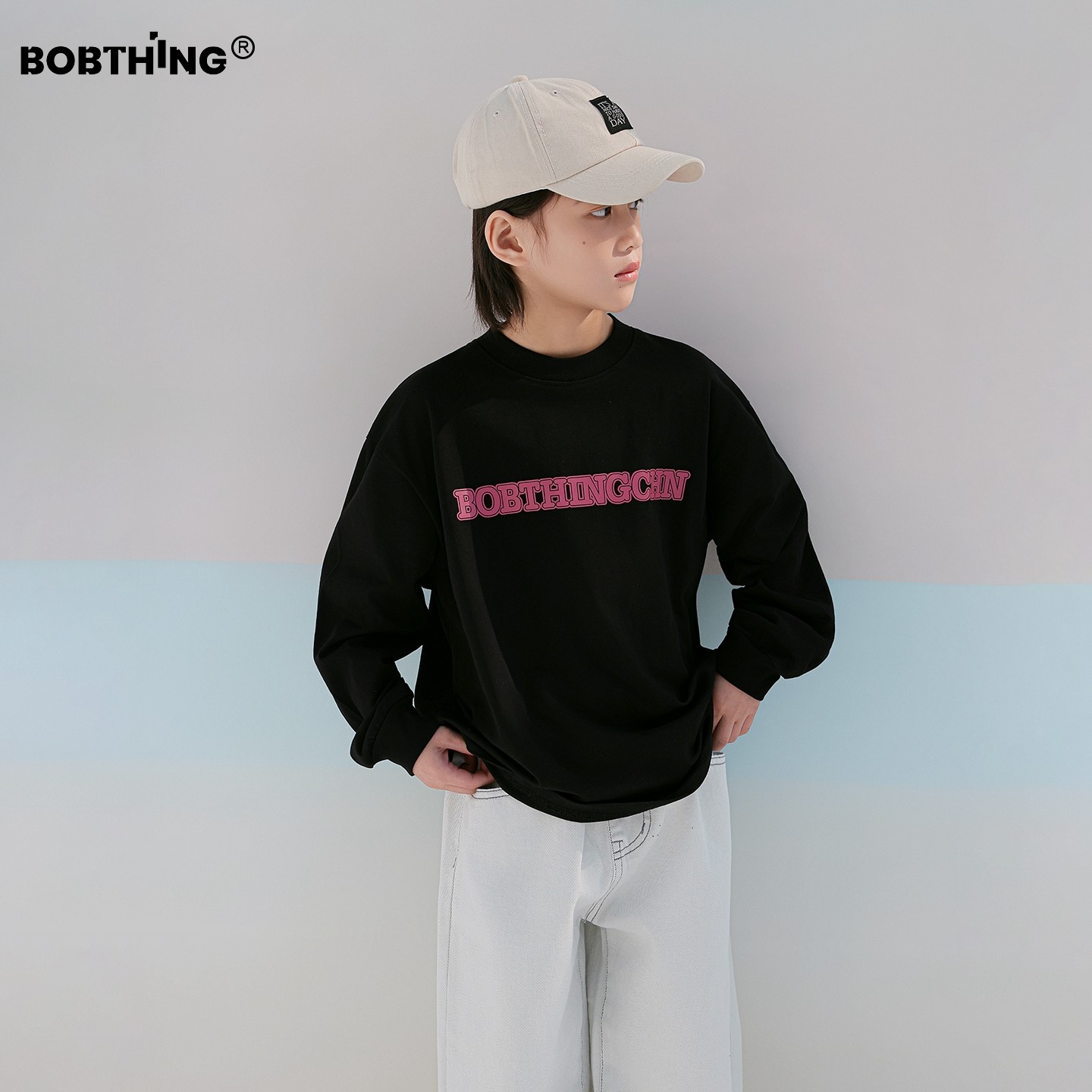 男童春装2026新款儿童背后撞色字母印花百搭T恤中大童长袖打底衫