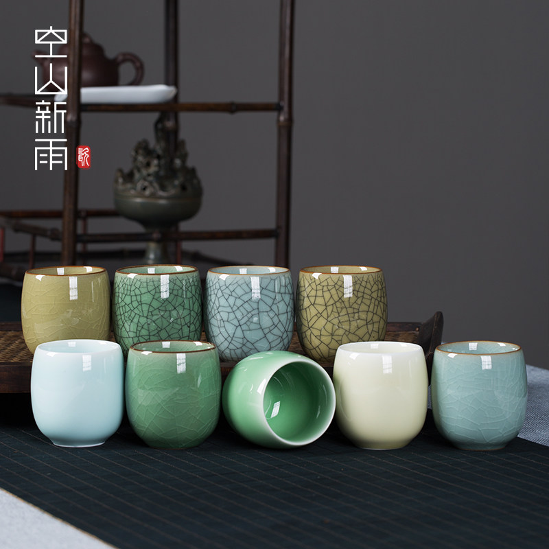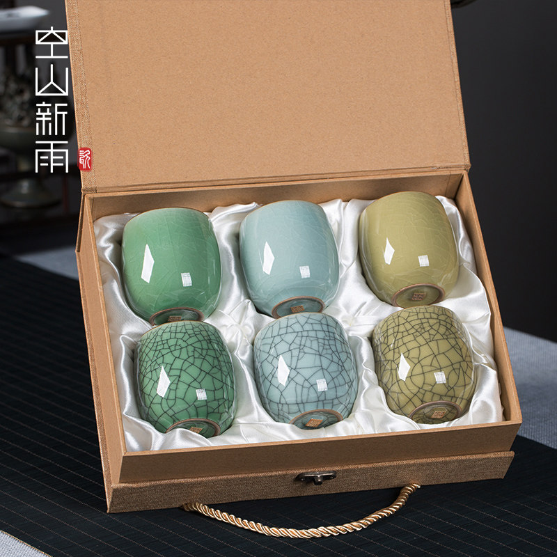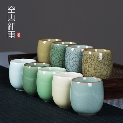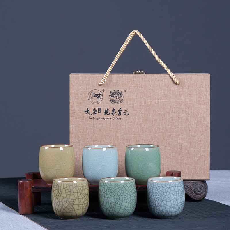 陶瓷泡茶杯6个套装家用主人杯客厅待客水杯龙泉青瓷喝茶随手杯子