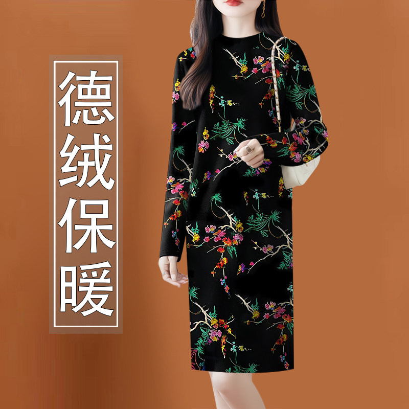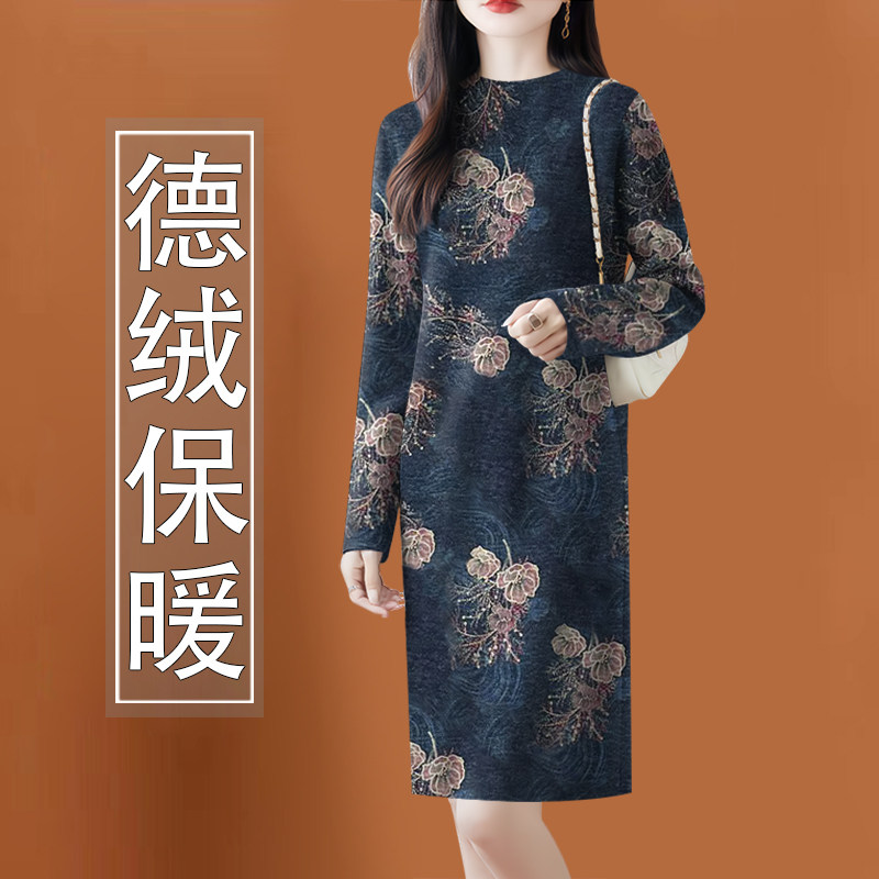 高档德绒女秋冬新款洋气连衣裙配大衣中长款内搭打底连衣裙