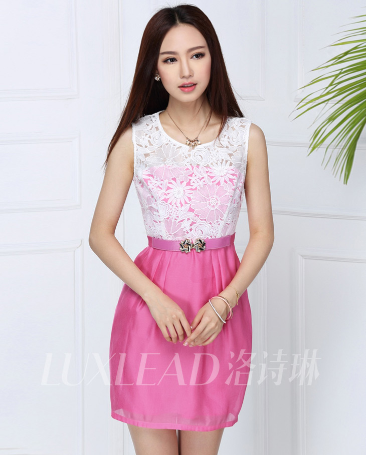 LUXLEAD洛诗琳 夏装撞色拼接水溶花包臀修身连衣裙