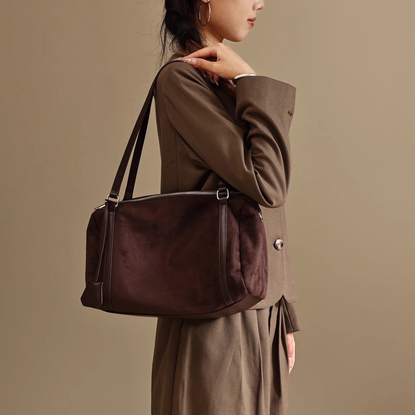 磨砂牛皮波士顿枕头包包女士2025秋冬新款大容量单肩斜挎包腋下包