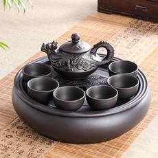 宜兴紫砂功夫茶具套装现代家用简约圆形茶盘泡茶陶瓷茶壶茶杯整套