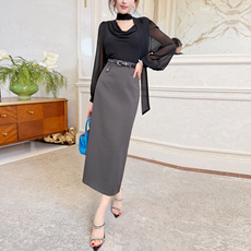 2026春夏新款OL通勤职业包臀半身裙中长款灰色高腰A字直筒西装裙¥ 138¥ 198