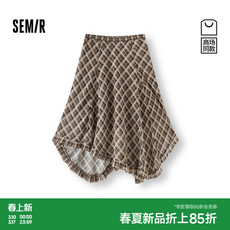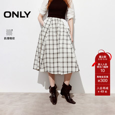 ONLY2026春季新款复古格纹印花纱网不对称下摆A字中长款半身裙女¥ 297¥ 399