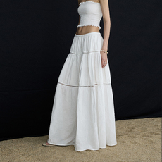 ourhour 镂空拼接 白色松紧腰宽松长款塔裙半身裙 女夏设计感半裙¥ 358