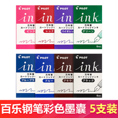 日本PILOT百乐钢笔彩色墨囊5支装 学生用蓝色红色黑色贵妃钢笔78G钢笔Kakuno笑脸钢笔墨胆一次性墨水囊¥ 21