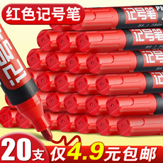 20支红色记号笔不掉色防水油性笔大号工地不可擦粗笔大头笔可加墨水工业粗头单头标记笔批发勾线笔物流涂码笔¥ 5.3¥ 7.3