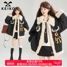 KEIKO [夹棉] 羊羔毛拼接翻领牛仔外套女25冬季卡通绣花宽松夹克¥ 378¥ 398