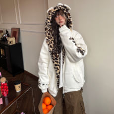 Amoeba美式复古豹纹座山雕连帽仿兔毛加厚夹棉外套男女冬季棉服¥ 219