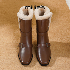 MILLIE'S/妙丽2025冬季新款加绒保暖短靴皮带扣装饰西部切尔西靴¥ 1349