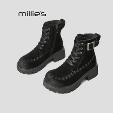 MILLIE'S/妙丽复古皮带扣机车靴女黑色短靴侧拉链百搭马丁靴Z¥ 989