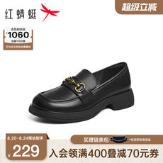 红蜻蜓乐福鞋女2025秋季新款女鞋一脚蹬黑色皮鞋通勤真皮厚底单鞋¥ 419¥ 459