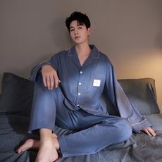 睡衣男士睡袍春秋款秋季纯棉长袖家居服全棉浴袍薄款长款三件套装¥ 499.2