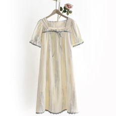 蕾丝花边宫廷风法式睡裙女士夏季纯棉纱布薄款短袖裙子家居服睡衣¥ 132.5