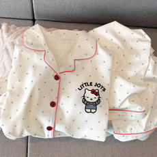 甜美少女ins仿棉睡衣女春秋季日系波点凯蒂猫卡通套装家居服¥ 35.1