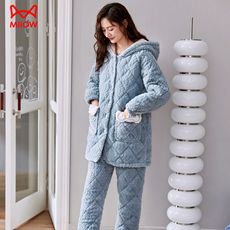 芬腾秋冬季睡衣女纯棉三层薄夹棉全棉加厚甜美格子日系家居服亲肤¥ 358¥ 409