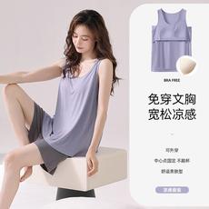 新品吊带背心睡衣女带胸垫一体式莫代尔冰丝无袖短裤两件套夏季家¥ 68.09¥ 87.3